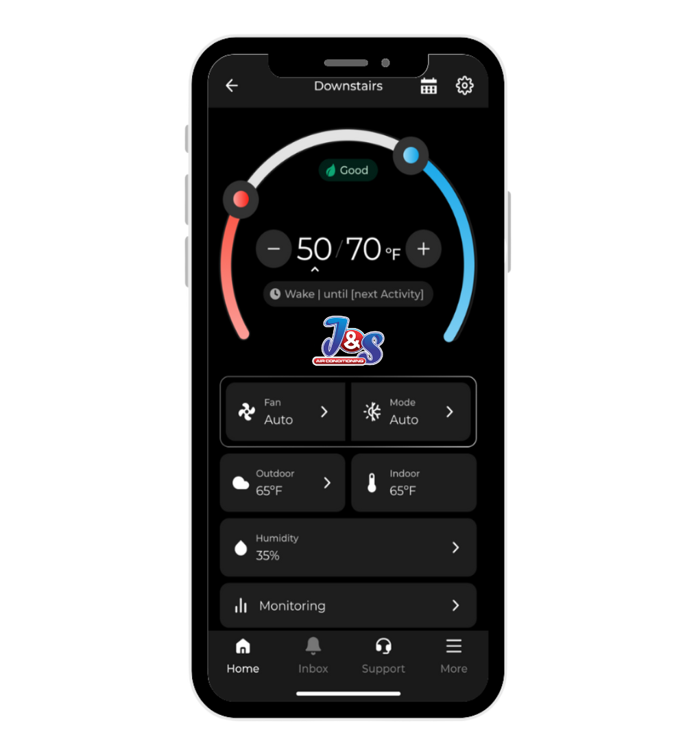 J&S Evolv Smart Thermostat is designed to automatically lower and raise the temperature in your home even when you’re not there, saving you money on energy bills. Change the temperature in your home, monitor the health of your HVAC system, and receive alerts for your maintenance needs wherever you are.